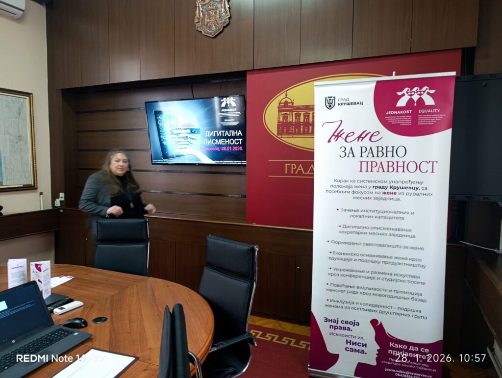 У оквиру реализације пројекта „Жене за равноправност“, који реализује Град Крушевац уз подршку Кабинета министра без портфеља задуженог за родну равноправност, спречавање насиља над женама и економско и политичко оснаживање жена, током децембра месеца реализовано је пет инфо-сесија у пет сеоских месних заједница на територији града.